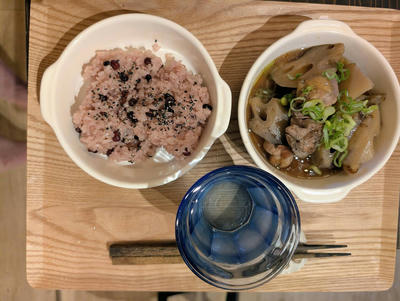 レンコンと鶏肉は、鍋でコトコト煮ながら、レンコンの硬さを見て火を止める。こちらも美味しくできました。やっぱり昆布の水出汁の威力は素晴らしいと思います。一手間なんですね。