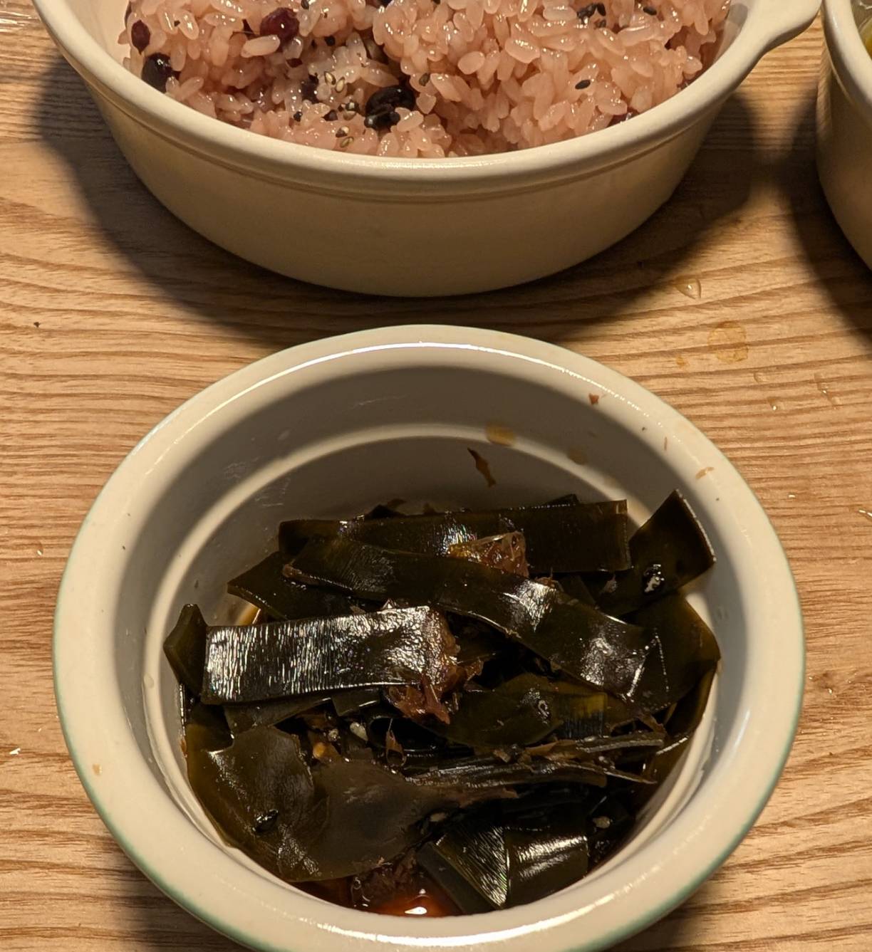 出汁を取った昆布ももったいないので、レンコンの煮物に加えた鰹節を掬ったのを加えて佃煮にして見ました。