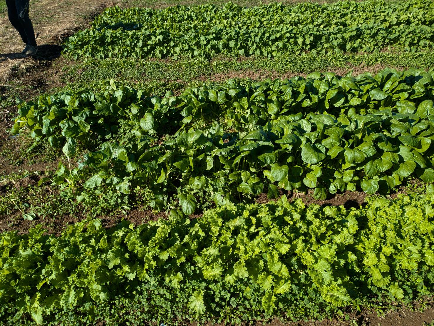 それにしても、ラディッシュから、のらぼう菜、からし菜、かき菜、わさび菜、小松菜、葉大根、そして白菜とたくさんの種類の葉物を作られていました。