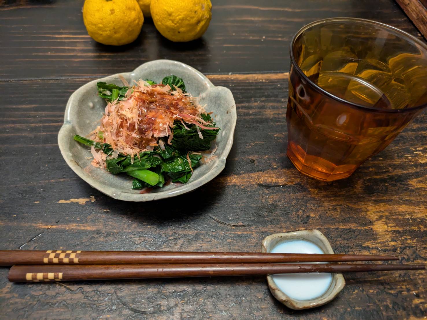 ほんの一部ですが、早速からし菜のお浸しを作って頂きました。