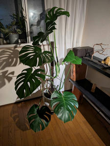 音楽を聞きながらと思いましたら、どうも成長したモンステラの葉が垂れているのかどうしても気にかかりました。