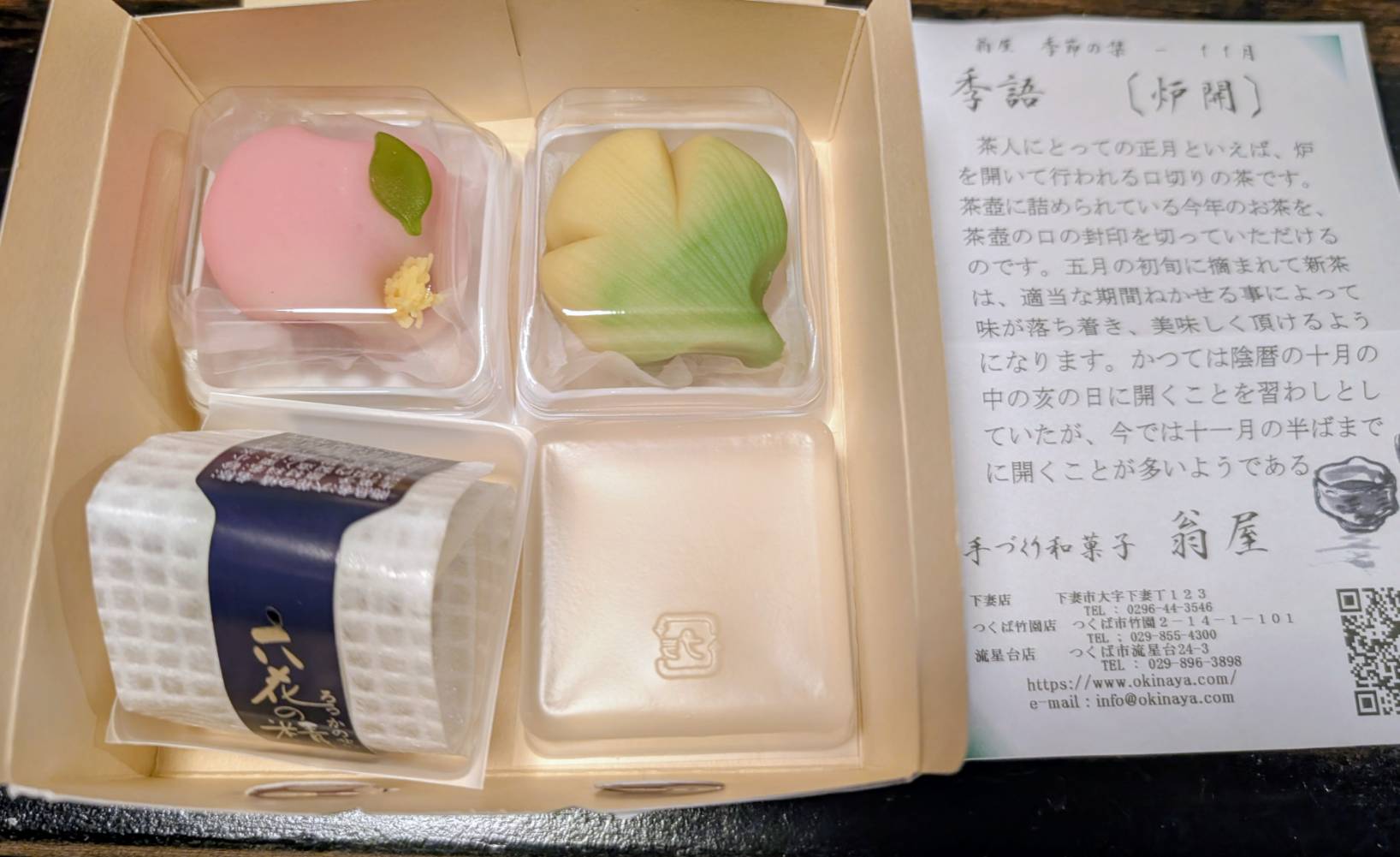 栗の大福。紅葉しはじめたイチョウの姿をした和菓子。何とも可愛らしく、愉しい和菓子を頂いた。