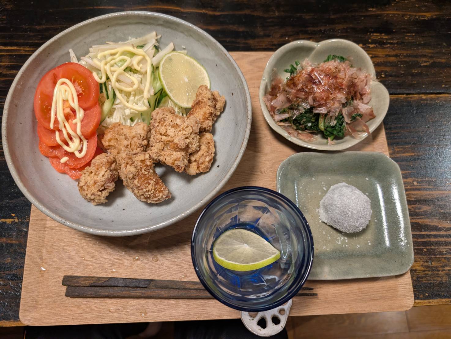(谷中で食べた鶏唐揚を再現してみたいと挑戦したが、及ばないのでさらなる改良を考える。頂いたトマトと和菓子を早速有り難く味わう。)