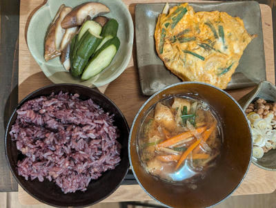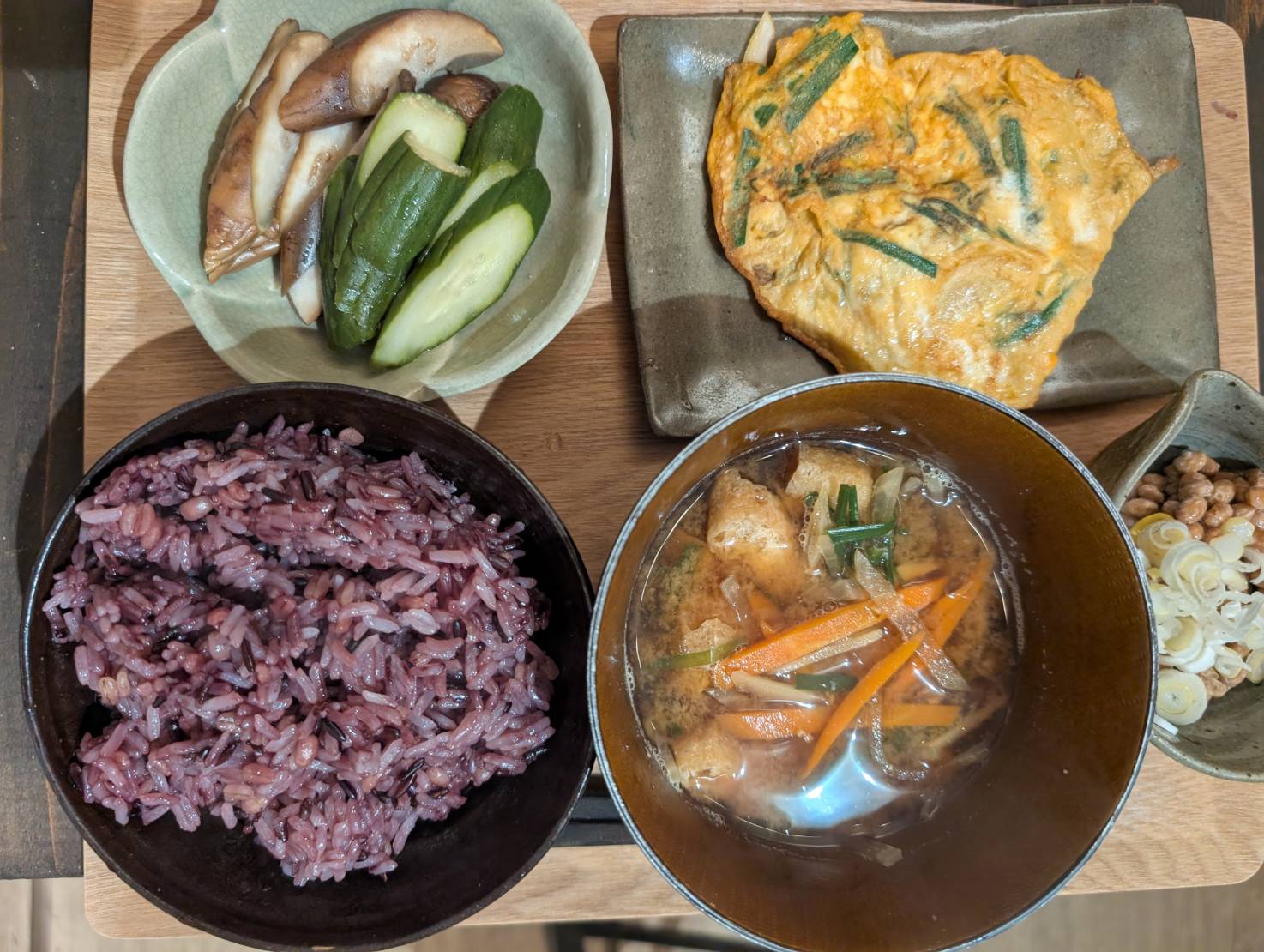 いつもの様に、朝ごはんを作ります。今日は、鉄製フライパンでこびりつかない焼方を試して、玉子焼を作り成功致しました。何事も一手間一工夫なんですね。