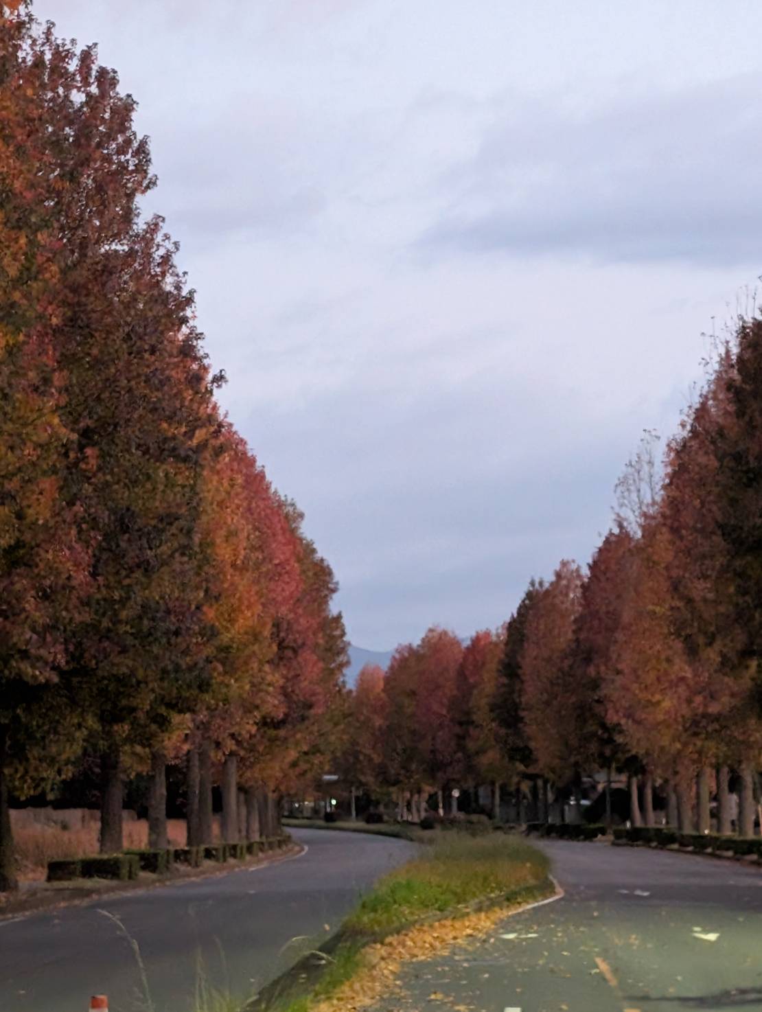 夜明けと共に、この街路樹の中をバスで走って行く。とても爽快だ。