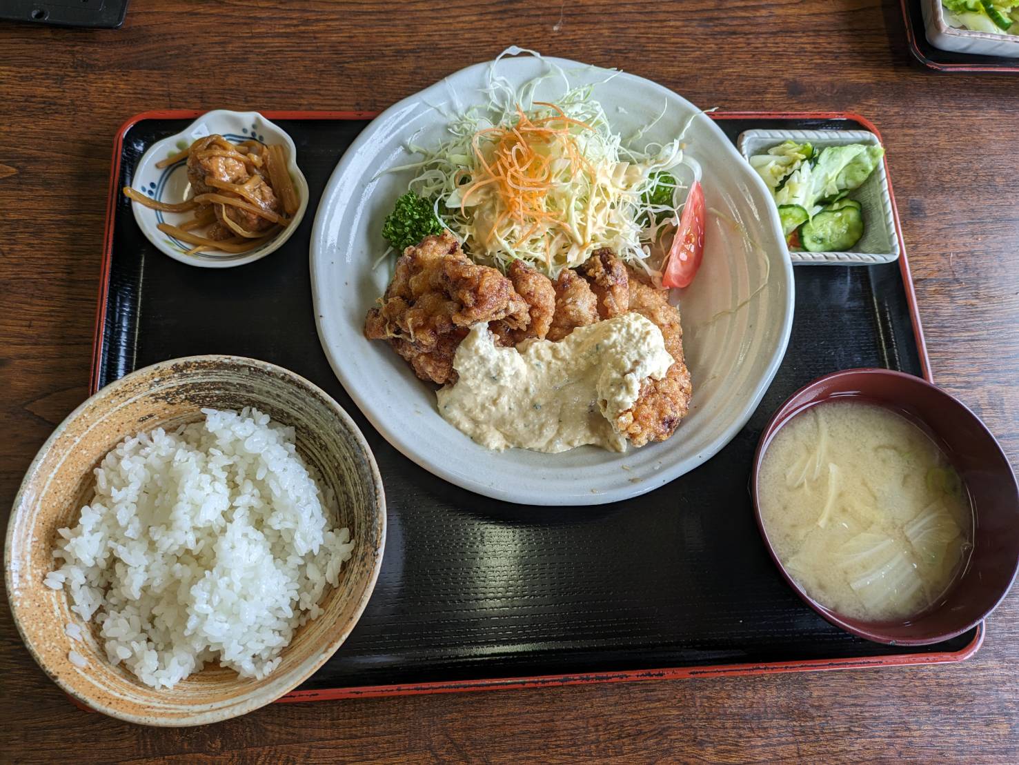 チキン南蛮もかなり大きなお肉を柔らかく、ジューシーに揚げてありました。漬物もパリパリして美味しいです。