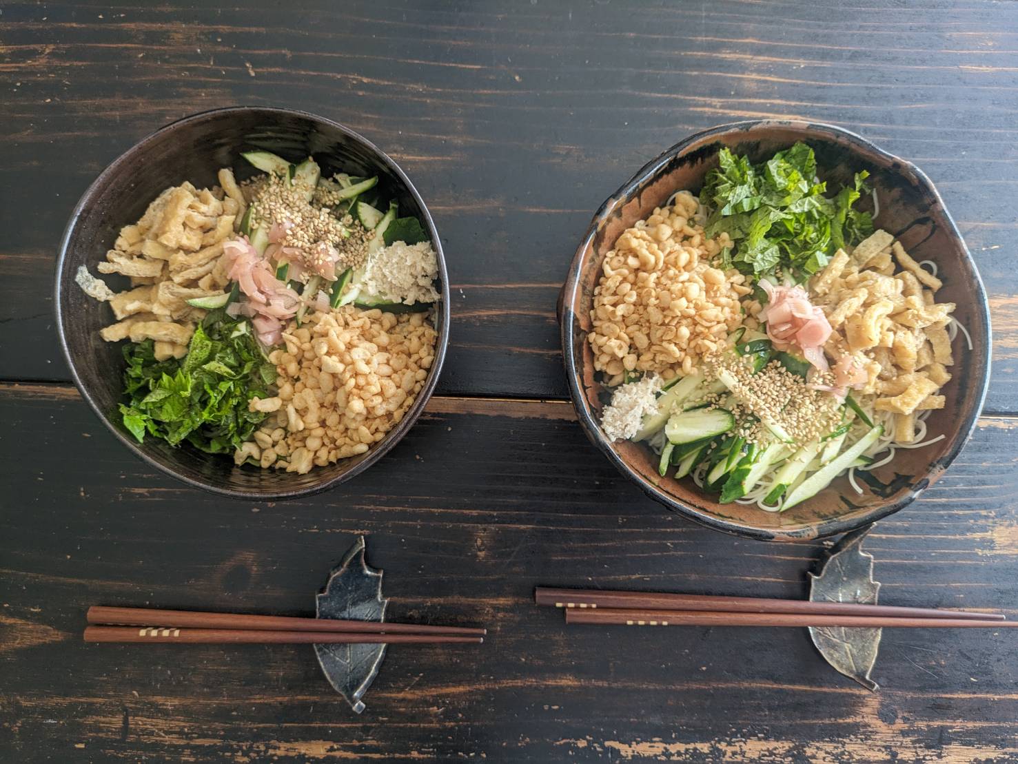 ちなみにお昼は、美味しいお揚げを頂きましたので揚げ玉も乗せて「ムジナソーメン」を作ってくれました。
