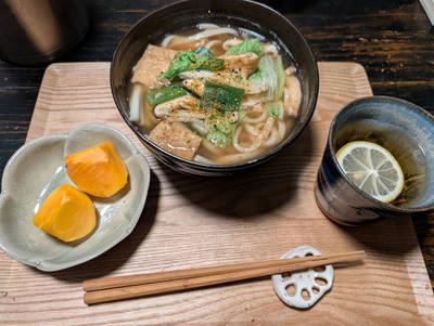 昨晩は、たらちり鍋で残ったスープを活かしうどんに致しました。昆布だしに鱈や野菜の出汁も出ていて、とても美味しいうどんになりました。