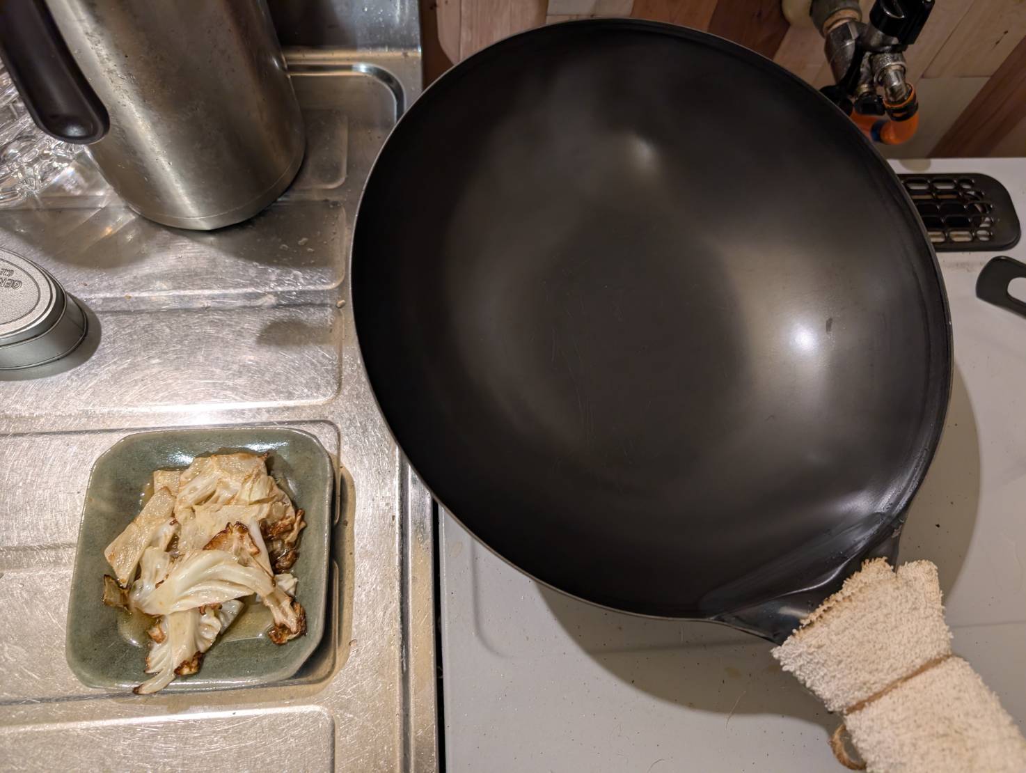 新しい中華鍋が届いたので、使用前の準備に油を敷き、クズ野菜を炒めて見る。やはりフライパンとは違う。熱は通っているのに、野菜の食感がしっかりと残っている。クズ野菜だろうと美味い!道具によって変わる事をまた一つ発見してしまった。
