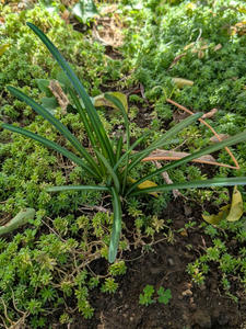 (相思花・彼岸花の葉が出て来ました。花が咲く時期には葉が無い。他の植物が枯れ始める頃に出て来て、陽射しを浴びて球根に栄養を送るのです。葉をちゃんと見たのは初めてです。)