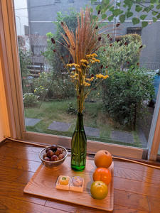 花瓶が無くて、お酒の空き瓶と言うのが私らしいですが、有り難く飾らせて頂きました。