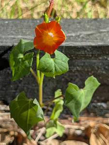 (種がどこから来たのか分かりませんが、ナンキンハゼの幹の脇から「マルバルコウソウ」が出て来て可愛い花を咲かせました。こちらでは良く見られる秋の花です。)
