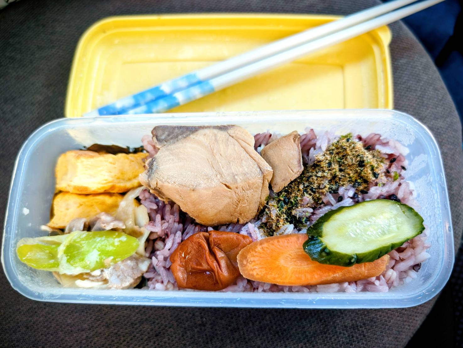 (昨晩、何と友人からおかずの差し入れがありました。今日は小学校の送迎バスなので、有り難く公園ランチでございます。)