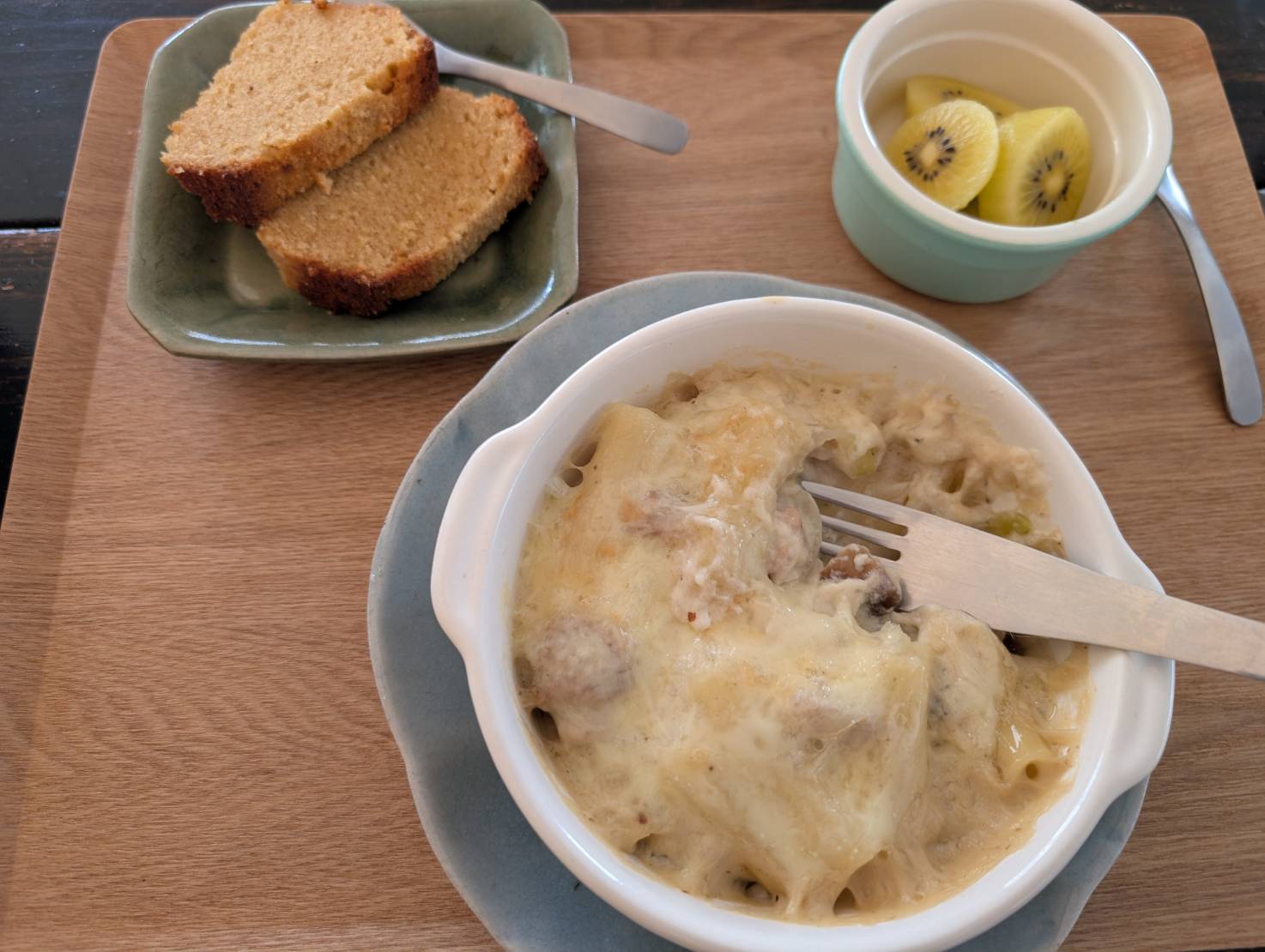 友人にも食べて頂きましたら「凄く良い香りがする。こんなに美味しいパウンドケーキは食べた事ない!」と言って「マジ、バス運転士をやってる場合じゃないかも。」なんて絶賛してくれました。マカロニグラタンも、褒めて頂きました。
