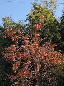 柿の木と言うのは、独特の枝ぶりに一体どれほど実を成らすのでしょうか?動物や人にたくさん食べさせて種を広げる。凄い木だと改めて感心致します。
