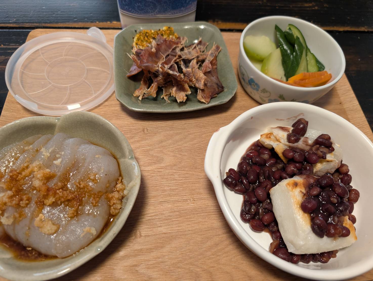 昨日は、小豆を煮て職場の同僚が練りに練ってよく伸びるお餅を頂きましたので「善哉」にして見ました。