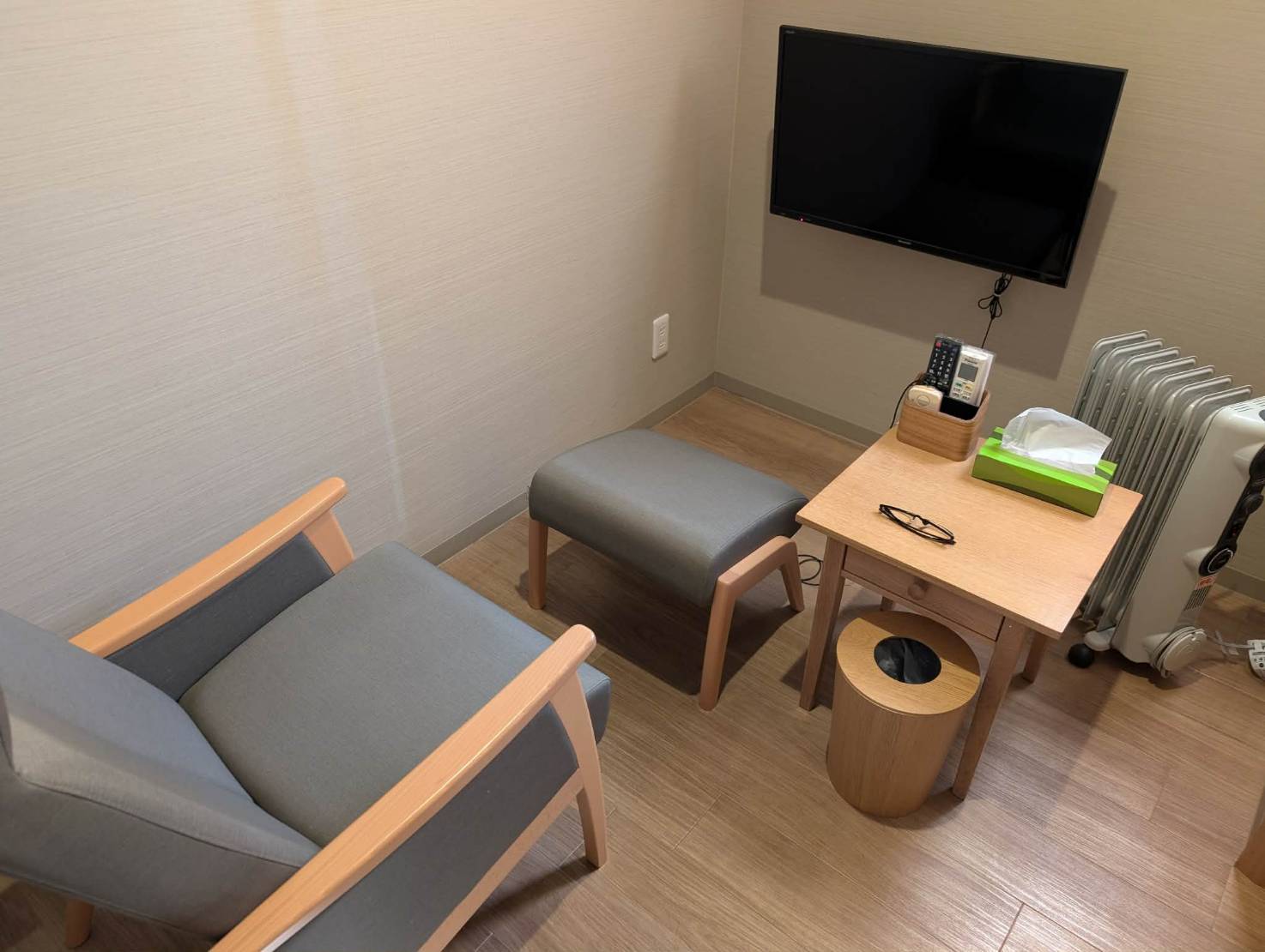 こんな個室でございました。時間を図りながら下剤と水を飲むので、リラックスどころではありませんでした。