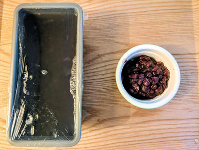 日曜日の朝は、餡を作り、寒天を煮戻してところてん(心太)を作り、水ようかんを作って見ました。初挑戦でございます。