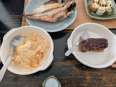 (餡が美味しくできたので、見てくれは良くありませんが、初挑戦の手づくり水ようかんも美味しく出来ました。右下です。)