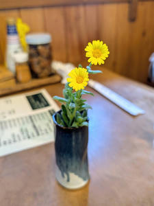 (綺麗なお店には、可愛らしい「キンセンカ」がありました。店主さんも感じが良い美浦村のお店です。)