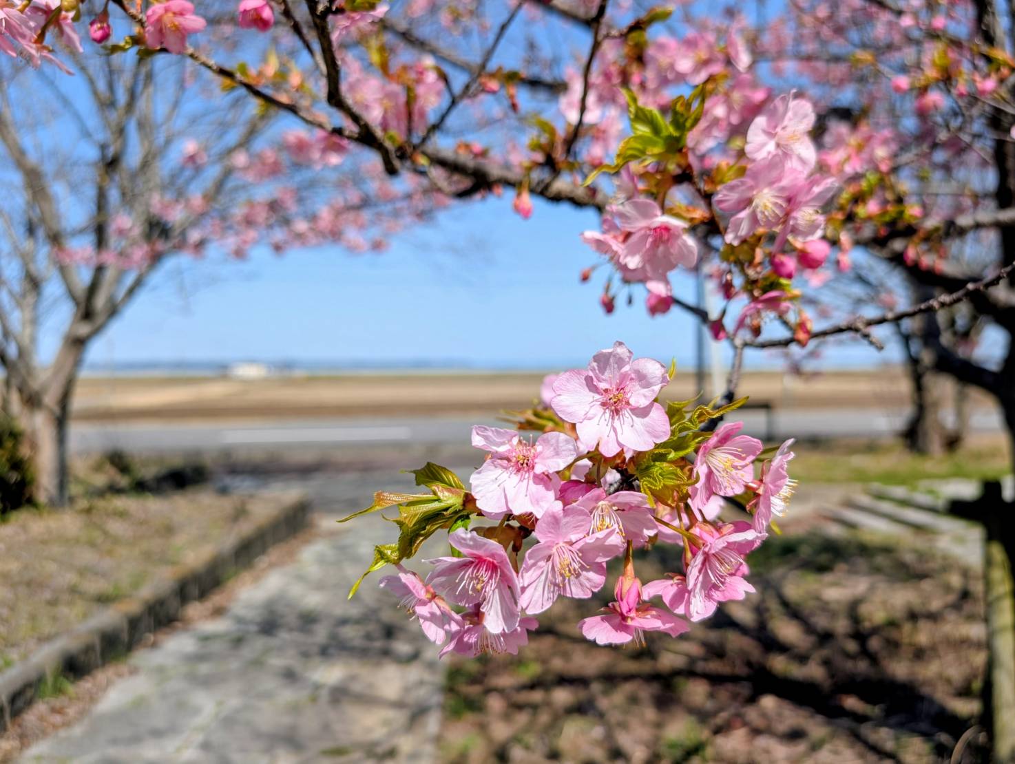 (うどんを食べた帰りに、早咲きの河津桜を発見致しました。)
