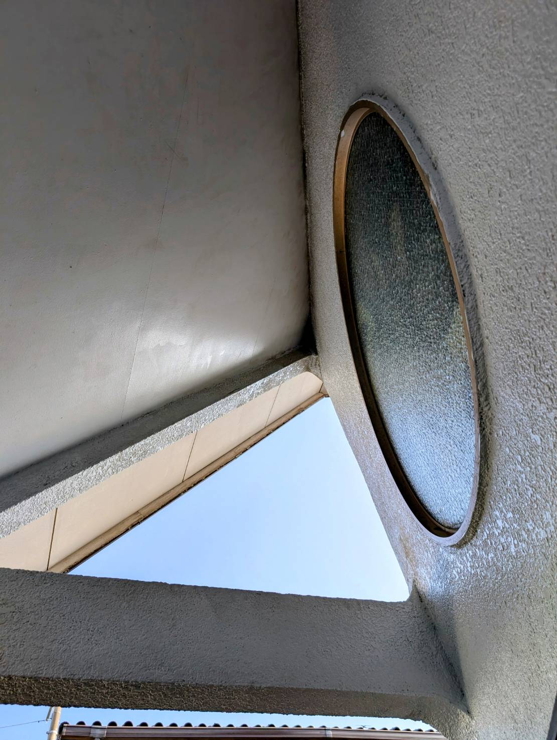ふらつきが酷かったのですが、友人に手伝って頂きながら玄関周りの壁のペンキ塗りをしました。2.8mの竿付きローラーで大まかは塗ったのですが、細部や仕上げのためにはやはり梯子を掛けて登らないと綺麗になりません。